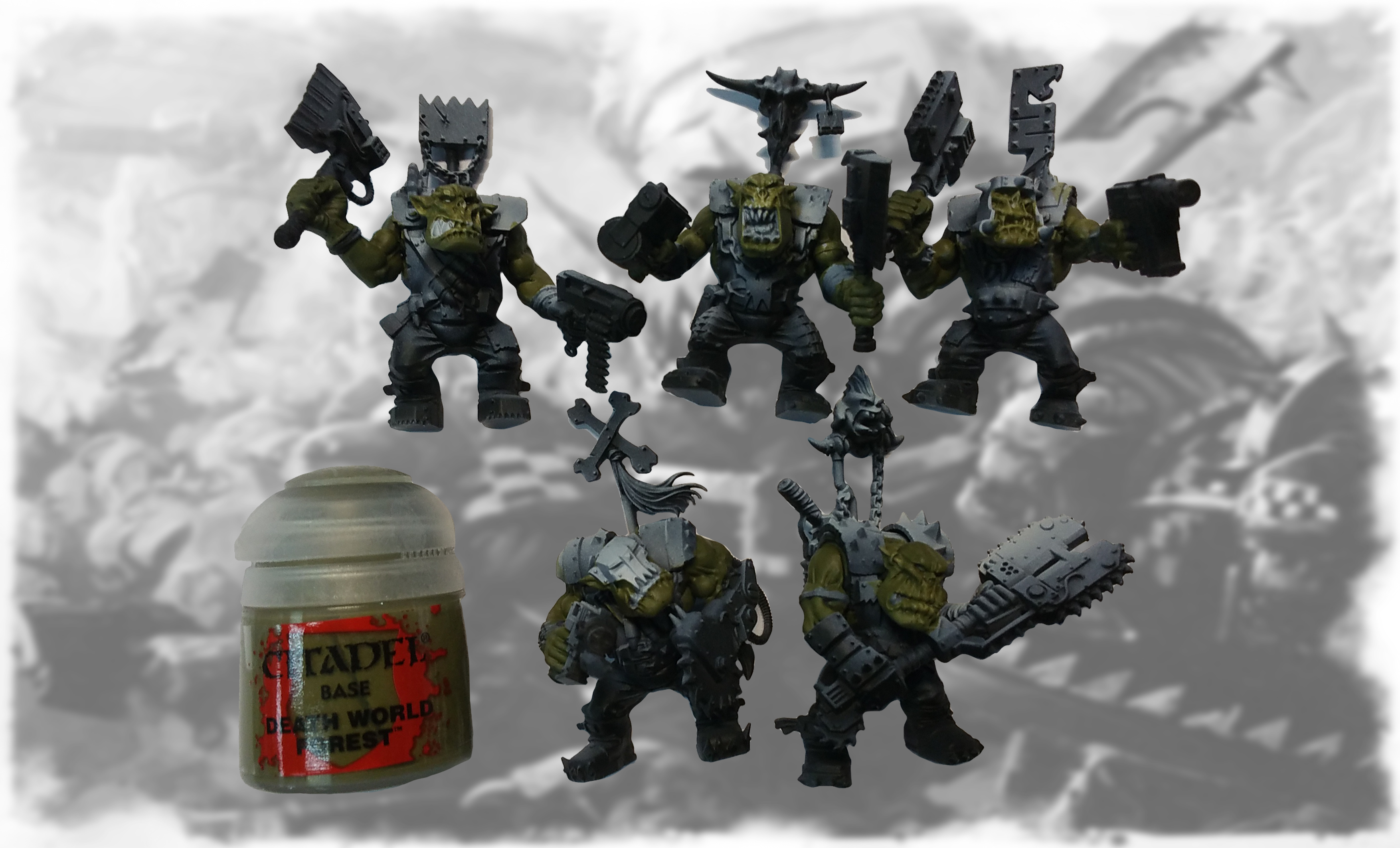 WAAAGH HUI SHAN!!! HERE COMES THE PAIN!! “It’s gonna hurt a lot, but you’ll be better! You’ll see! Ha Ha HA HA!” Hui Shan here! This week, I am back with the update of the Nobs, and the Painboy. Look forward to the Deff Dread next week! Ork Nobz Skin Image 1 of 3 Death World Forest for 'em skin